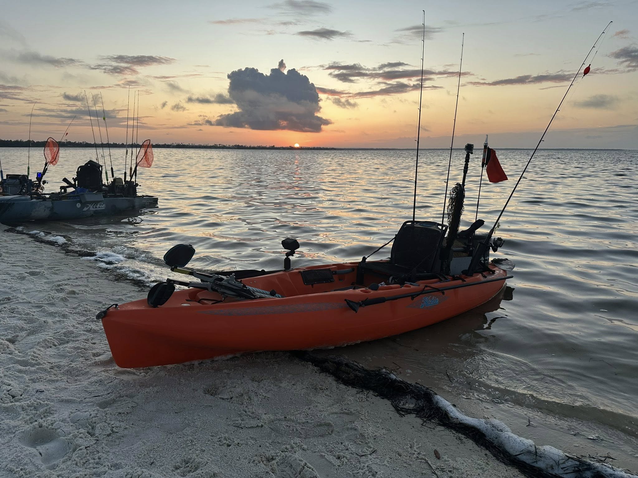 We'll be using Hobie pedal-drive kayaks for this trip, and let me tell you, these things are a game-changer for offshore fishing. The pedal system lets you cover more water with less effort, keeping your hands free for fishing. We'll rig up with a mix of light and medium-heavy rods, depending on our target species. For king mackerel, we might use wire leaders and spoons or live bait rigs. When we're after snapper, we'll switch to bottom rigs with circle hooks. I'll show you how to use the kayak's built-in rod holders, fish finders, and other nifty features that make kayak fishing so effective. And don't worry if you're new to this – I'll walk you through everything from knot tying to proper fish handling techniques. By the end of the day, you'll have a solid grasp on offshore kayak fishing tactics that you can use on future trips.