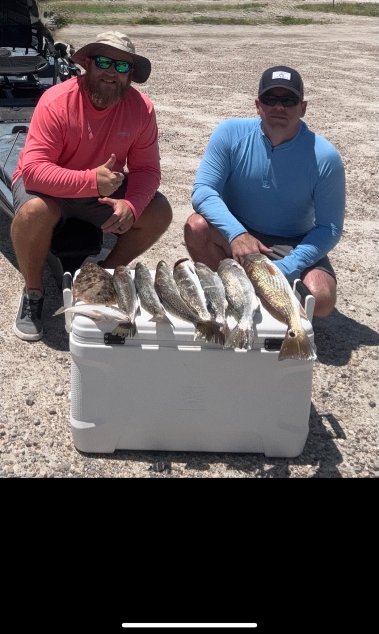 Cobia: Also known as ling or lemonfish, cobia are curious creatures that often swim right up to the kayak. They're powerful fighters, known for long runs and acrobatic jumps. We typically sight-fish for cobia in the spring as they migrate along the coast. They can grow over 100 pounds, though most we catch are in the 20-40 pound range. Cobia meat is excellent for grilling or sashimi.
